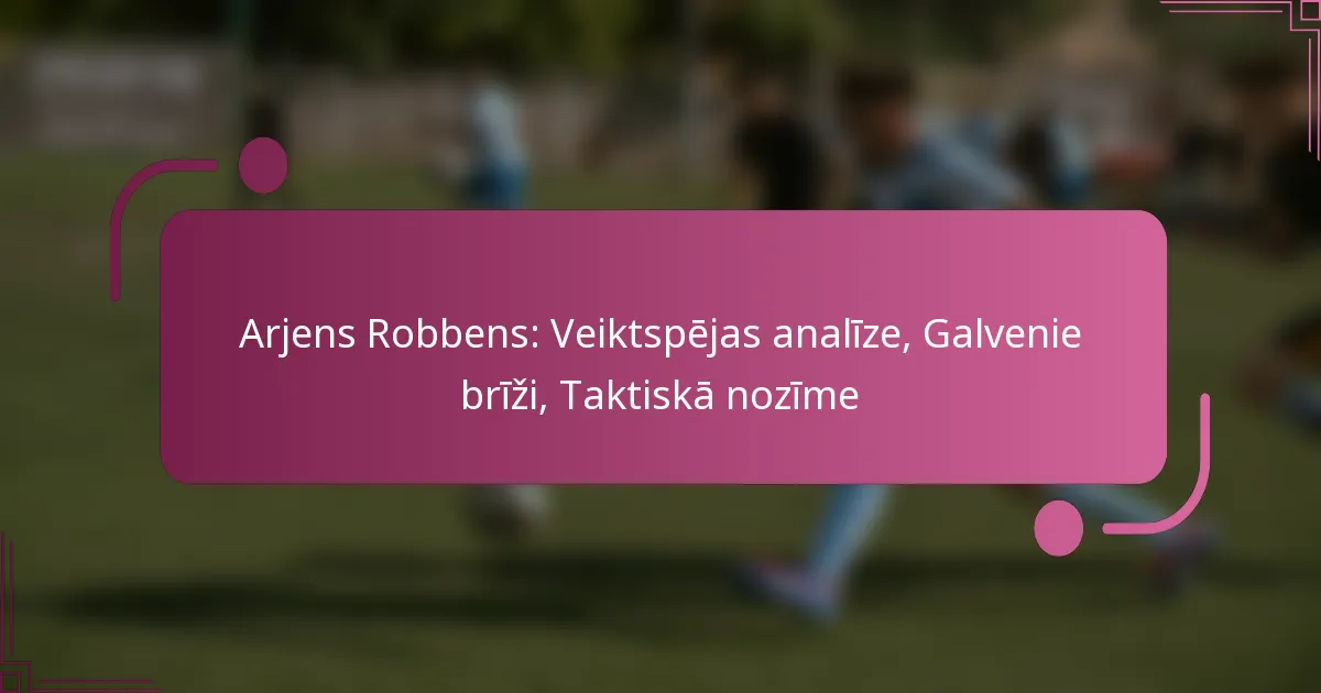 Arjena Robbena izcilā karjera ir raksturota ar viņa ievērojamajiem snieguma rādītājiem, kas parāda viņa nozīmīgo lomu vārtu guvumā un spēles veidošanā. Ar vairākiem ikoniskajiem mirkļiem, kas ir noteikuši spēles un turnīrus, viņš ir nostiprinājis sevi kā galveno figūru futbolā. Viņa izcilās prasmes un pielāgošanās spēja ne tikai ietekmējušas viņa komandas taktiskos izkārtojumus, bet arī atstājušas paliekošu ietekmi uz sportu kopumā.