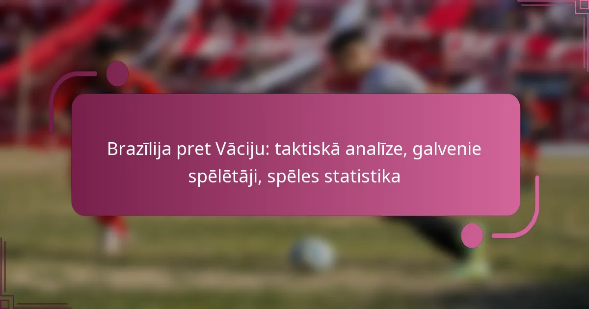 Brazīlijas un Vācijas taktiskās analīzes atklāj atšķirīgas pieejas formācijām, spēlētāju pozicionēšanai un stratēģijām, kas būtiski ietekmē maču iznākumus. Brazīlija bieži uzsver plūstošu uzbrukuma spēli, kamēr Vācija parasti koncentrējas uz strukturētu bumbas kontroli un aizsardzības stabilitāti.