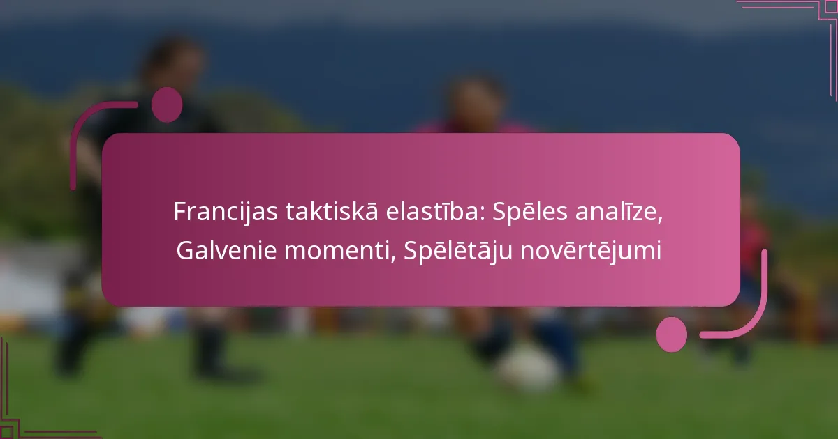 Francijas taktiskā elastība futbolā izceļ komandas spēju pielāgot stratēģijas un formācijas atbilstoši dažādiem pretiniekiem un spēles situācijām. Šī pielāgošanās ir būtiska, lai maksimizētu sniegumu un nodrošinātu pozitīvus rezultātus. Analizējot spēles gaitu, var redzēt, kā galvenie spēles momenti un spēlētāju novērtējumi ietekmēja viņu stratēģisko pieeju, kas galu galā ietekmēja spēles iznākumu.