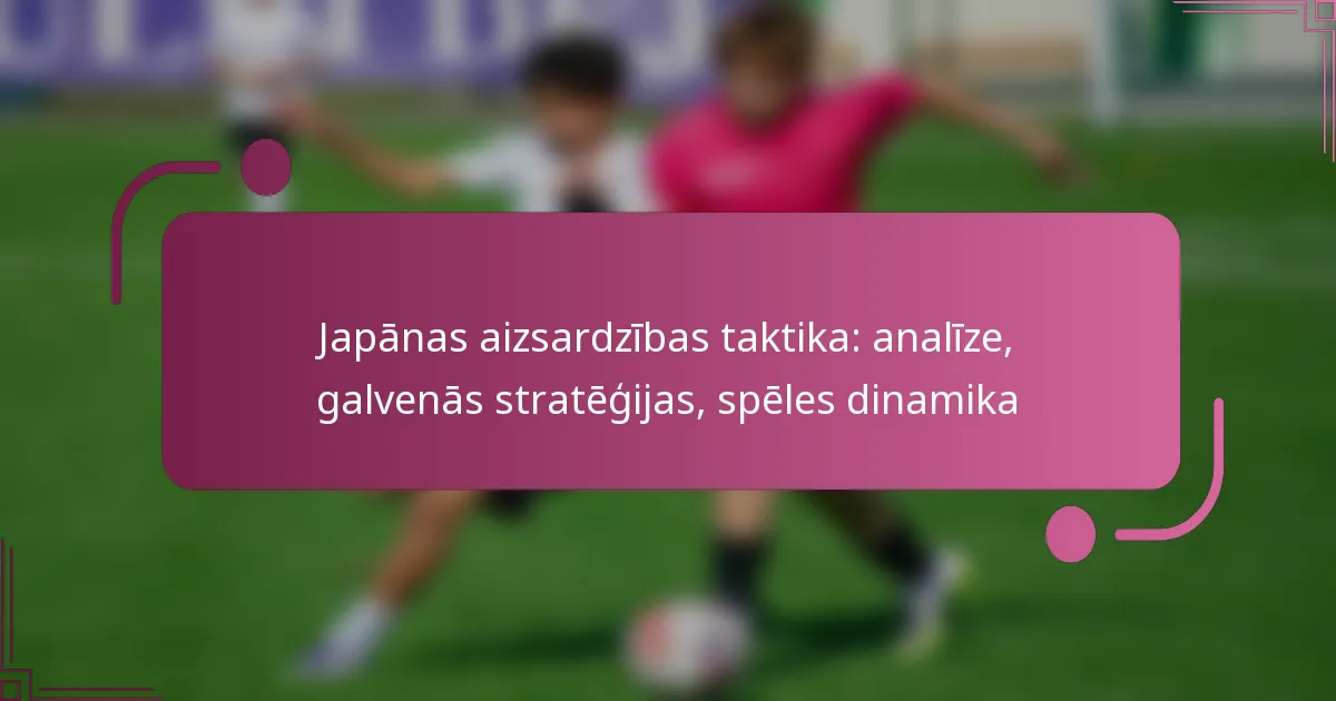 Japānas aizsardzības taktika sportā raksturojas ar organizācijas, disciplīnas un pielāgojamības apvienojumu, ko veido kultūras ietekmes un spēcīga apņemšanās strādāt komandā. Šīs stratēģijas ne tikai nodrošina zemu ielaisto vārtu skaitu, bet arī uzlabo spēļu iznākumus, pateicoties dziļai pretinieku vājību izpratnei un efektīvai spēlētāju pozicionēšanai. Izmantojot progresīvas tehnikas, piemēram, spiedienu un marķēšanu, Japāna saglabā aizsardzības stabilitāti, vienlaikus paliekot gatava pretuzbrukumiem.