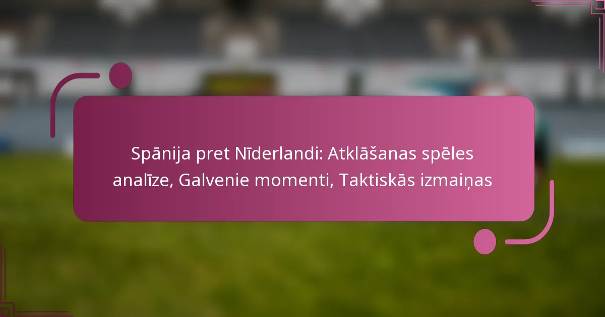 Atklāšanas spēle starp Spāniju un Nīderlandi bija iezīmēta ar izšķirošiem momentiem, kas ietekmēja spēles iznākumu. Galvenie spēles elementi, tostarp svarīgi vārti un stratēģiskas aizsardzības manevri, izcēla taktiskās izmaiņas, ko abas komandas pielietoja visā mačā. Šīs pielāgošanās ne tikai ietekmēja individuālo sniegumu, bet arī kopējo dinamiku laukumā, radot aizraujošu un konkurētspējīgu spēli.
