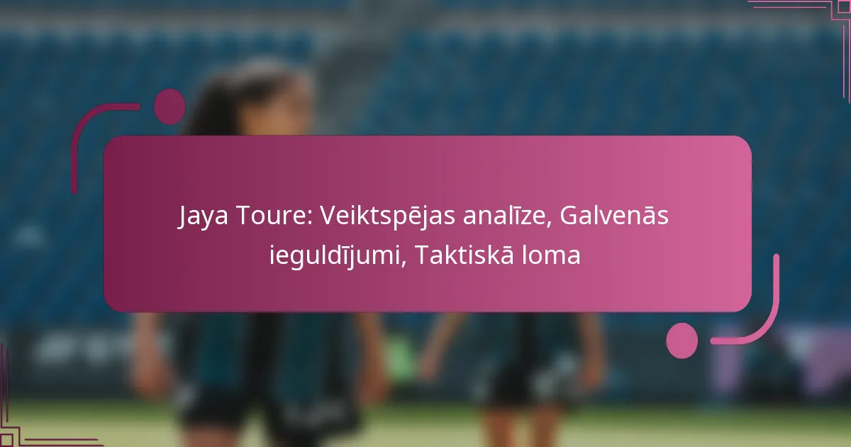 Jaya Toure: Veiktspējas analīze, Galvenās ieguldījumi, Taktiskā loma